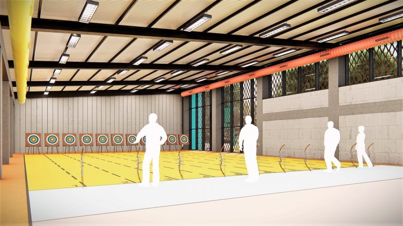 Okçuluk Kamp alanı içerisinde 265 metrekare idari kısım ve 570 metrekare okçuluk salonu bulunuyor. 265 metrekare idari kısım içerisinde ise 2 adet engelli soyunma odası, 2 adet engelli wc-duş, 1 adet eğitmen odası, 1 adet erkek öğrenci soyunma odası, wc, 1 adet kız öğrenci soyunma odası, 1 adet atölye odası, 1 adet depo, 1 adet teknik hacim odası, 1 adet pano odası bulunuyor. 570 metre karelik okçuluk salonu içerisinde de 456 metrekare 1.salon ve 114 metrekare 2.salon yer alıyor.