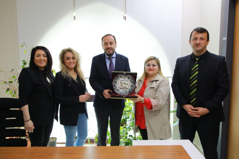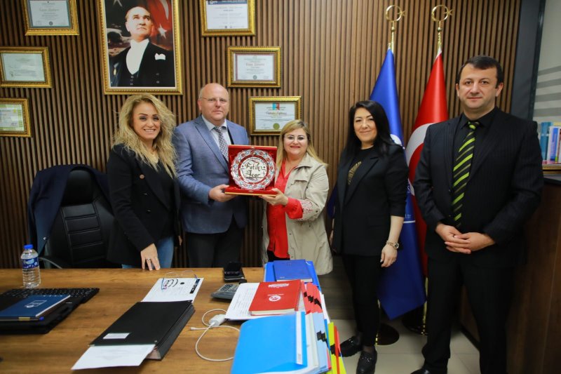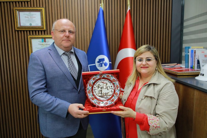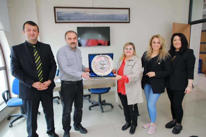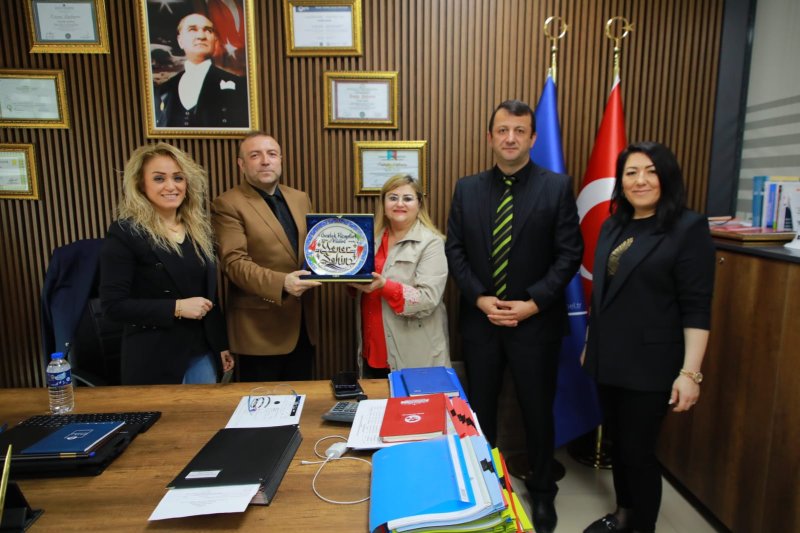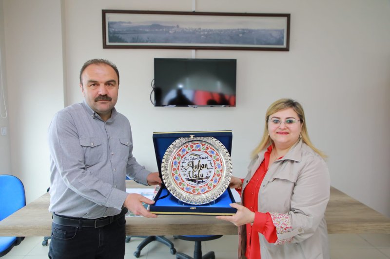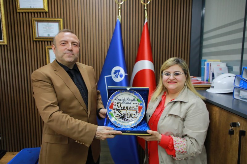 Fen İşleri Müdürü Ayhan Uslu'ya, Destek Hizmetleri Müdürü Yener Şahin'e ve Destek Hizmetleri Şefi Fatih Acar'a plaket takdim ettiler.