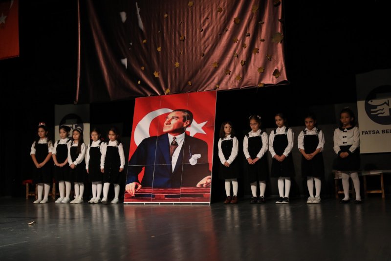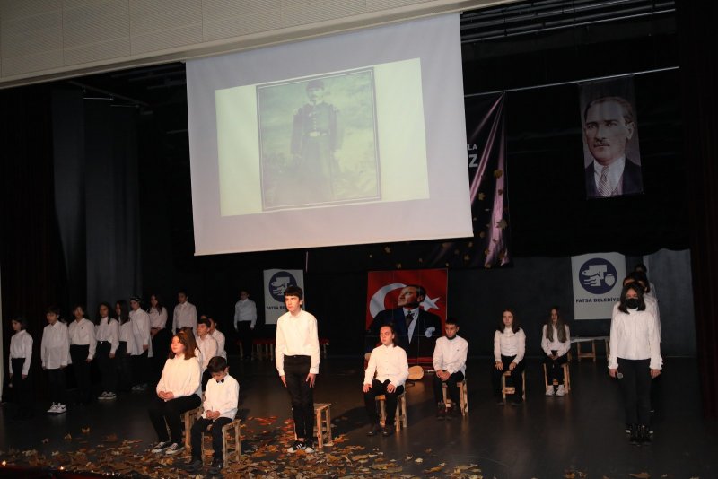 Anma programının ikinci Fatsa Anadolu Lisesi ve TOKİ İlköğretim Okulu tarafından ortaklaşa Fatsa Belediyesi Kültür Merkezi’nde gerçekleşti. Saygı duruşu ve İstiklal marşının okunmasıyla başlayan anma programının açılış konuşmasını Anadolu Lisesi Tarih Öğretmeni Erdem Topçu gerçekleştirdi. Topçu yaptığı konuşmada, Atatürk’ün aydın bir insan olmak için her şeyi göze alacak kadar kararlı, binlerce kitabı notlar alarak okuyacak kadar kitap dostu, sınırsız bilgi dağarcığını genç nesillere aktarmak için kitaplar yazan bir yazar olduğunu belirterek, “Atatürk askerlik mesleğini canı kadar seven, bu mesleği hayat tarzı olarak benimseyen, üniforma aşığı bir asker, cepheden cepheye savaştan savaşa koşan başarılı bir komutan. Atatürk, diline, kültürüne kökten bağlı, Türk olmakla gurur duyan, tarihe ışık tutan geçmişe ışık olan bir tarih bilimci. Atatürk, uykusundan, istirahatından vazgeçip’’ söz konusu vatansa gerisi teferruattır’’diyecek kadar ara vermeksizin çalışan bir Türkiye sevdalısı. Cumhuriyete, halk iradesine, eşitlik, yenilik, özgürlük uğruna yüreği kor alevler gibi yanan bir devlet adamı. Birleştirici, ikna edici, inandırıcı, beyinleri kalpleri okumayı bilen bir konuşmacı… Çocuklara bayram hediye eden,geleceği gençlere teslim eden ve eğitimin önemini vurgulayan bir başöğretmen. Düşman bayrağını çiğnemeyecek kadar asil bir lider, bizim valsimiz dediği zeybek havasını hastayken bile ustalıkla oynayacak kadar Anadolu aşığı bir adam… Yedi düveli dize getirecek kadar kahraman, ölümü göze alan, savaşı gerekmedikçe cinayet olarak gören bir dünya cengâveri. Öngörülü, isabetli, kökten kararlar alacak kadar cesur, askerine, halkına güvenen, Anadolu halkının gözbebeğinde özgürlüğe olan açlığı daha Samsun’da fark eden muazzam insan. Şam, Trablusgarp, Filistin, Anadolu, İstanbul, Rumeli dört bir yanda savaşan, hayatı tanıyan, Türklüğün izlerini süren bilim adamı. Halkın ihtiyaçlarını bilen, halkın bağrından çıkan bir halk adamı. Türk milletinin atası, Türk ulusunun başkomutanı, Cumhuriyetin kurucusu, modern Türkiye’nin mimarı, gönüllerin vazgeçilmez sevdalısı. 10 Kasım 2021…bugün atamızın ebediyete intikalinin 83.yıldönümü. Saygıyla, sevgiyle andığımız Ulu Türk’ün. Ulu önder’i andığımız 10 Kasım yine geldi. Onu anarken sadece keder ile değil gururla da anmalıyız. Dünya milletlerine karşı onun gibi bir dehayı çıkardığı için bizi dünya üzerinden silmeye çalışanlar karşısında türkün tokatının yüzlerine vurmasının gururuyla anmalıyız. Onun bu millete ve ülkemize yaptıklarını değerlendirip öğretisini anlayıp amaç ve hedefinin ne olduğunu neler yapmak istediğini yaptıklarını kavramaya çalışmalıyız . Bu hem bir vefa borcu, hem de geleceğe daha iyi hazırlanmanın temel şartıdır. Ulu önder’i bütün kabiliyet ve meziyetleriyle tanımak genç nesiller için şarttır. Kurmuş olduğu ülkeyi gençlere emanet etmiş onların omuzlarında yükseleceğine inanmış bu sorumluğu onlara vermiştir. Atatürk, genç sayılabilecek yaşta vefat etmesine rağmen mucizevi başarılarla az zamanda çok işler yapmış büyük eserler bırakmıştır.” dedi.