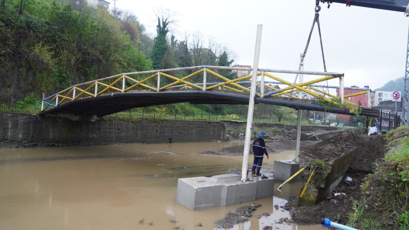 Afetten etkilenerek uç kısımlarından hasar gören çelik araç ve yaya köprüsünün ayakları prekast beton bloklarla güçlendiriliyor. Beton bloklarla tahkimatı yapıldıktan sonra köprü kısa süre içerisinde araç ve yaya trafiğine açılacak. Ekipler akabinde hem üst kısmında 60 metre mesafe uzaklıkta bulunan yaya köprüsünün de onarımı yapacak. Dere yatağında temizlik çalışması başlatan Fen İşleri Müdürlüğü Ekipleri, köprü onarımına da bir hafta içerisinde start verecek.