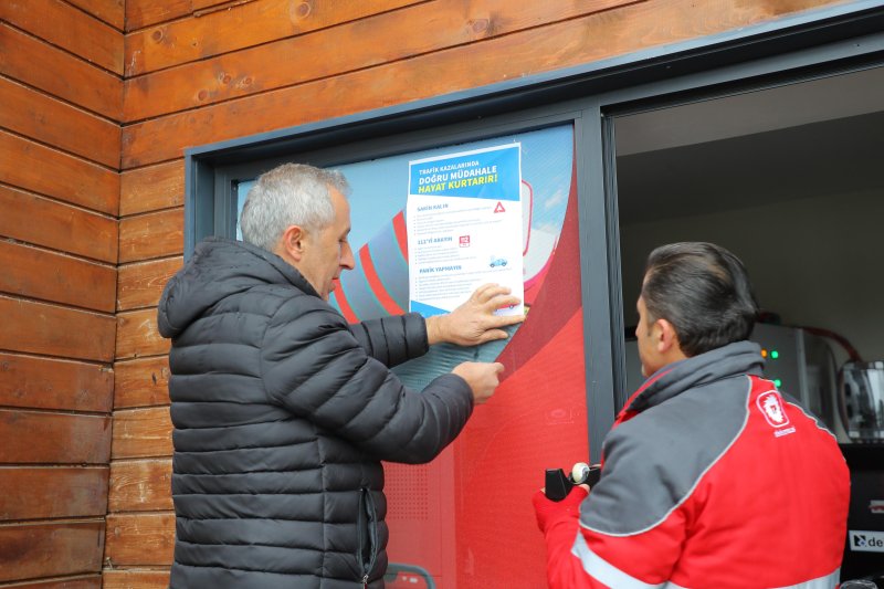 Bu kapsamda, karayoluna bitişik veya çok yakın konumda bulunan ticari işletmelere, akaryakıt istasyonlarına ve satış reyonlarına Zabıta Müdürlüğü tarafından, “Trafik Kazalarında Doğru Müdahale Hayat Kurtarır” sloganıyla hazırlanan el broşürleri dağıtıldı. Yapılan bu bilgilendirme çalışmasıyla hem sürücülerin hem de yayaların trafik güvenliği konusunda daha bilinçli hale gelmesi hedefleniyor.