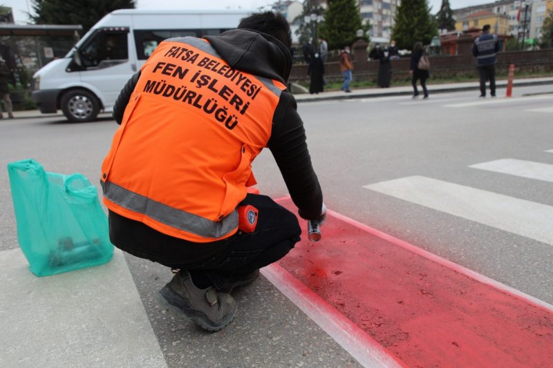 “Yaya Önceliği Kırmızı Çizgimizdir” uygulaması kapsamında Fatsa Orta Büyük Camii ve Yeni Kumru Caddesi Reşadiye Kavşağında yaya geçitlerine kırmızı çizgiler çizildi.