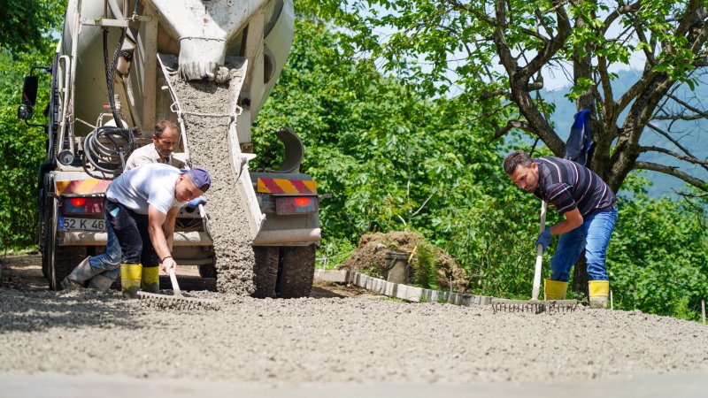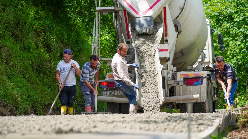 Fatsa Belediyesi Kırsal Hizmetler Müdürlüğü ekipleri tarafından kırsal alanlarda beton yol çalışmaları aralıksız devam ediyor.