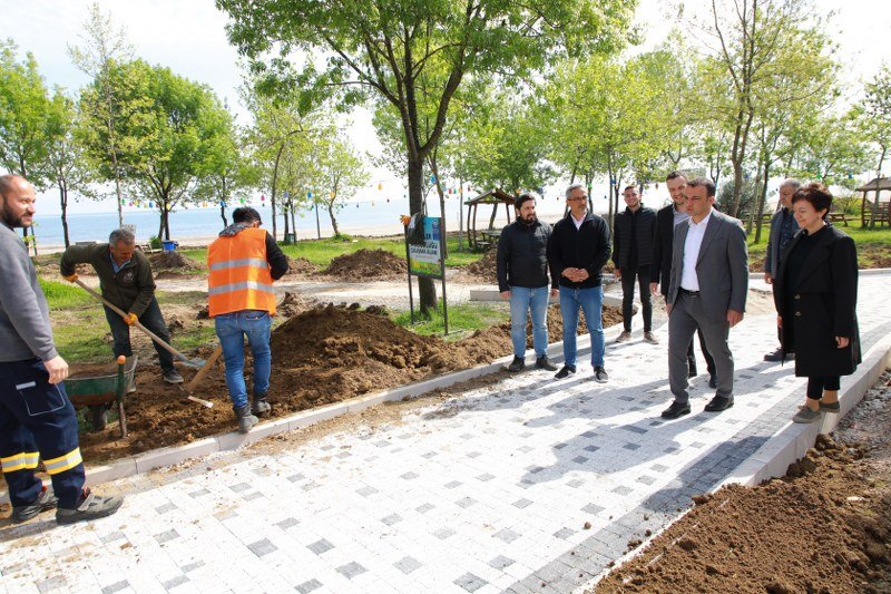 Uzunkum Plajında yapılan çalışmaları yerinde inceleyen Belediye Başkanı İbrahim Etem Kibar, yapılacak işlerle ilgili teknik ekiple istişarede bulundu.