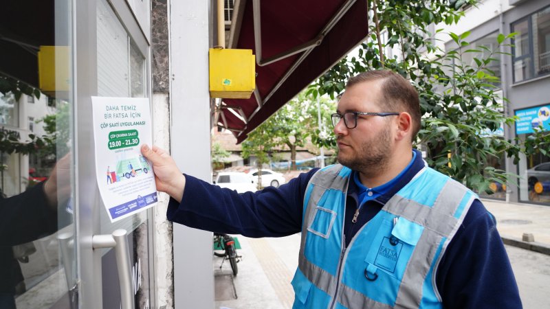 Fatsa Belediyesi Temizlik İşleri Müdürü Erdem Yuva ve ekipler ilçenin sorumluluk alanında yer alan mahallelerde çöp bırakma saatleri yazan broşür dağıttılar ve vatandaşlara sözlü olarak da bilgi verdiler.