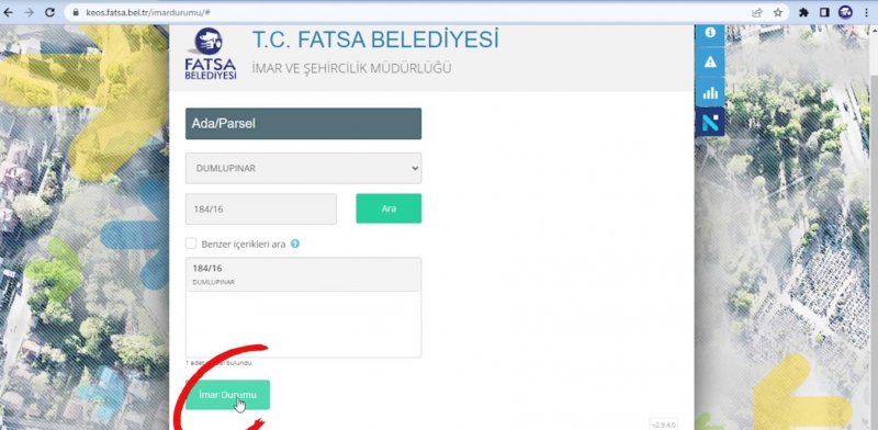 Hayata geçirilen uygulamayla vatandaşlar, imar konularında Fatsa Belediyesi’nin ‘fatsa.bel.tr’ isimli resmi internet sitesine girerek uygulamadan faydalanabilecek. E-imar durum butonunun tıklanmasıyla istenilen bilgiler girilerek imar durumu sorgulaması yapabilecek. Böylece vatandaşlar belediyeye gelmeden hizmetten hiçbir ücret ödemeden faydalanabilecek. Vatandaşlar, internet sitesi üzerinden ada ve parsel bilgilerini girerek ada, parsel bilgilerine göre plan verilerine ait bilgilere ulaşabilecek.