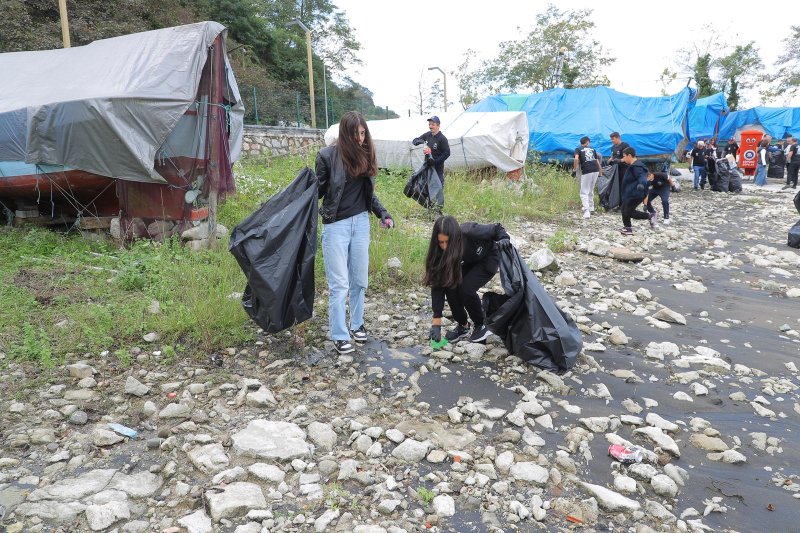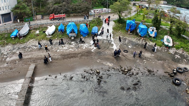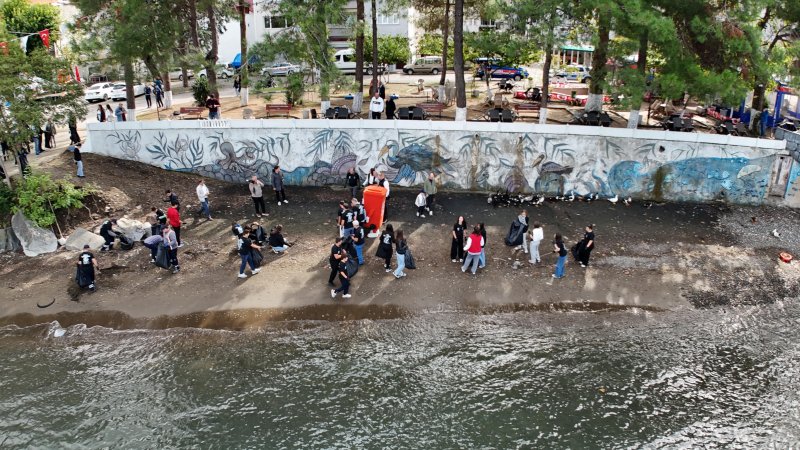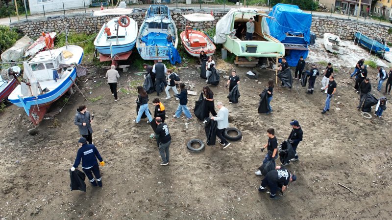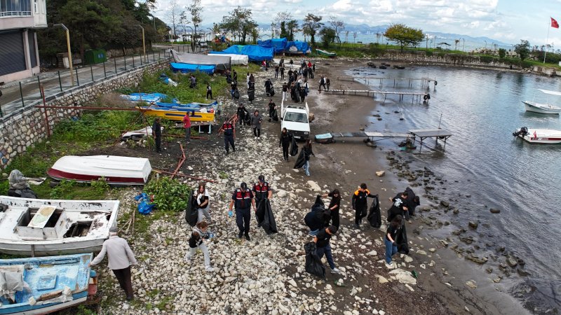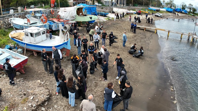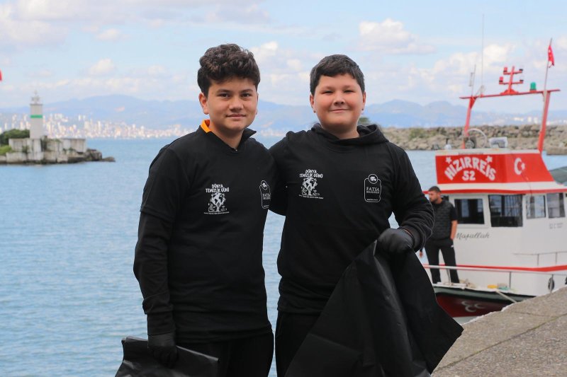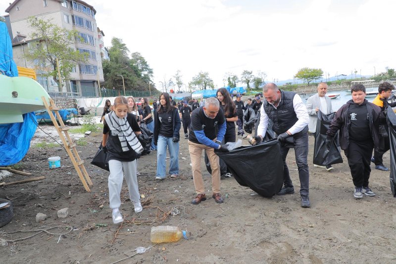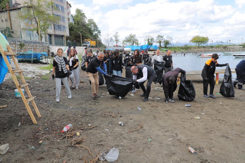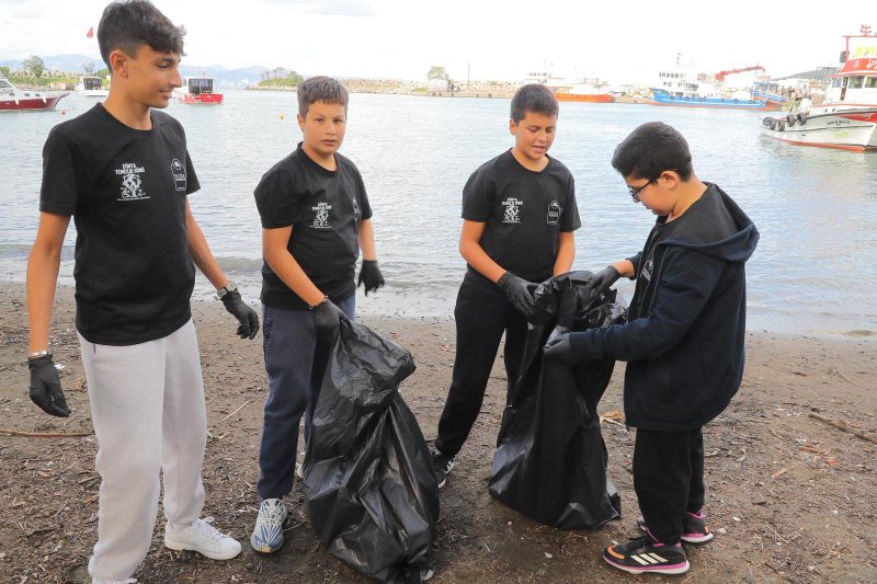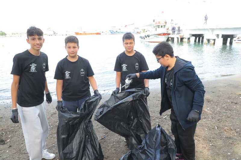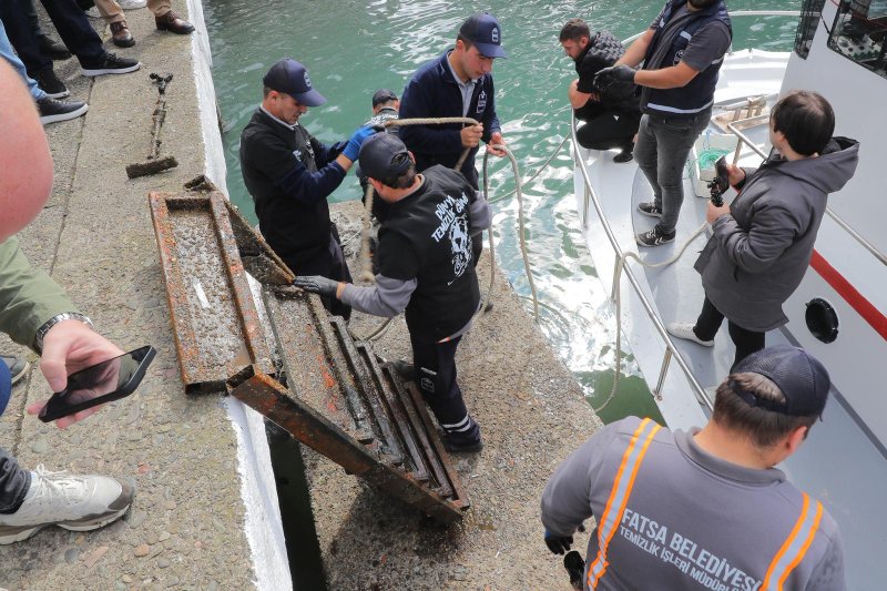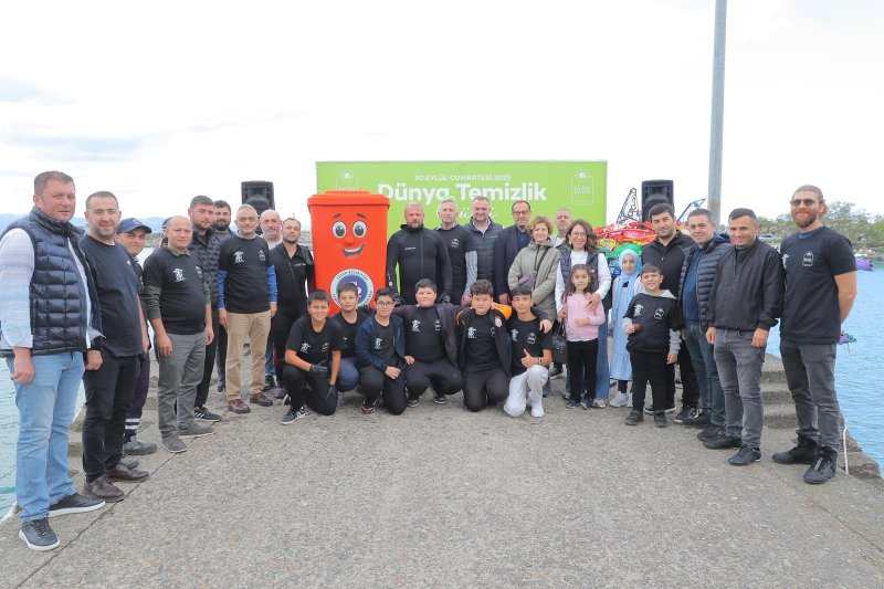 Fatsa Belediyesi tarafından Dünya Temizlik Günü kapsamında Yalıköy sahilinde gerçekleştirilen temizlik seferberliğinde ortaokul öğrencileri çöp toplarken dalgıçlar da liman içerisinde deniz dibinden devasa demir merdiven ile araba lastikleri çıkardı.