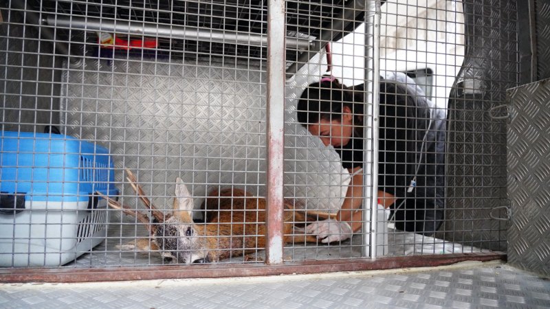 Fatsa İslamdağ mahallesinde aniden bir bahçeden yola çıkan Karaca otomobil çarpması sonucu yaralandı. vatandaşların ihbarı üzerine Karaca’ya ilk müdahale için olay yerine Fatsa Belediyesi Veterinerlik Hizmetleri Müdürlüğü’ne bağlı Hayvan Ambulansı geldi ve Karaca’yı ilçe merkezine götürdü. Fatsa Belediyesi Veteriner Hizmetleri Müdürü Veteriner Hekim Ebru Biçim burada 4 yaşlarında olduğu tespit edilen Kara’ya destekleyici ilk müdahalede bulundu. Araç çarpması sonucu şoka girdiği belirtilen Karaca kanama kesici ilaçlarla ilk müdahalesinin ardından ileri tedavisi için Ordu’dan gelen Doğa Koruma Milli Parklar İl Müdürlüğü ekiplerine teslim edildi.