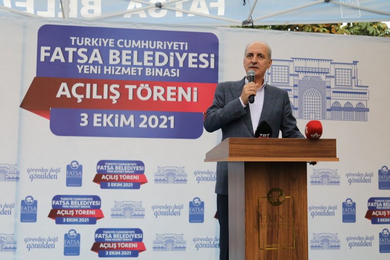 Açılışta son konuşmayı yapan AK Parti Genel Başkan Vekili Prof.Dr.Numan Kurtulmuş’ da Fatsa’nın son yıllarda almış olduğu hizmetler sayesinde eksiklerini tamamlamış olan bir ilçe olduğunu belirterek, “İlçe belediye binamızın burada yapılmış olması, böylesine muhteşem bir binanın kapısını çalacak herkese hizmet verecek olması sadece belediyecilik hizmetleri bakımından değil, şehrin değerini artırması bakımından da önemlidir. Bizim hedefimiz yeniden güçlü Türkiye’yi kurmaktır. Her alanda ekonomisi ile siyaseti ile eğitimi ile sağlığıyla yerel yönetimleri ile çok güçlü bir Türkiye’yi kurmak mecburiyetindeyiz. Güçlü ve büyük ülkeler güçlü şehirlerden oluşuyor. Burada bir slogan gördüm, hoşuma gitti. ‘Görevden değil, gönülden” Bir işi görev olsun diye yaparsanız o biraz memur işi olur ama gönülden yaparsanız vatandaşımızın gönlünü almak için yaparsanız kendi gönlünüzün kapısını vatandaşa açarsanız hem yapılan hizmetler dolayısıyla memnuniyet çok yüksek olur hem de işlerinizi daha kolay bir şekilde yaparsınız. Hizmeti toplumun bütün kesimlerine yaparsınız. Yapılan hizmetler şan şöhret olmak için yapılan hizmetler değildir hele görevimi yapayım diyecek işler hiç değildir. Bu işler halkın duasını kazanmak Allah’ın rızasını kazanmak için yapılırsa yöneticiye güç verir motivasyonunu arttırır. Bu hizmet binamızın görevden değil gönülden, ben de bu sözü zihnime yazdım, güzel bir slogan. Hakikaten gönülden bu hizmetleri yapacağız. Allah’ın izniyle halkın duasını da kazanacağız. Hepimizin görevi bu vatanı daha ileriye götürmektir. Fatsa’da bize son seçimde verilen destek son yapılan anketlerde Fatsa’daki memnuniyet oranı seçimde aldığı oy oranından daha yüksek. Demek ki vatandaşımız takdir etmesini biliyor. Bundan sonra bizim kadrolarımızın en önemli işi girmeyi başardıkları gönüllerden düşmemeyi başarmaktır. Gönül’e girmek çok zordur, çaba ister vakit ister, enerji ister, emek ister. Onun için 2023’e giden yolda bizim için kilit burasıdır. Gönülden düşmemek ise çok zor bir iştir. Onun için gönlüne girdiğimiz vatandaşın gönlünden düşmemeyi başaracağız. Henüz gönlünü alamadığımız vatandaşın gönlüne girmeyi başaracağız. Allah’ın izniyle gönüllere girdikten sonra insanların zihinlerinde yer edebiliriz. 2023 Türkiye Siyaset tarihinin en kritik seçimlerinden birisidir. Bu seçimlerde yeniden Cumhurbaşkanımız Recep Tayyip Erdoğan’a inşallah büyük bir oy oranıyla Cumhurbaşkanı seçtirmek için şimdiden gece gündüz gayretle çalışacağız ve inşallah daha güçlü Türkiye’ye daha müreffeh bir Türkiye’ye ulaşmak için gayretimizi sıklaştıracağız. Allah yolunuzu açık eylesin. Allah milletimizle olan gönül bağımızı bırakmasın.” dedi.